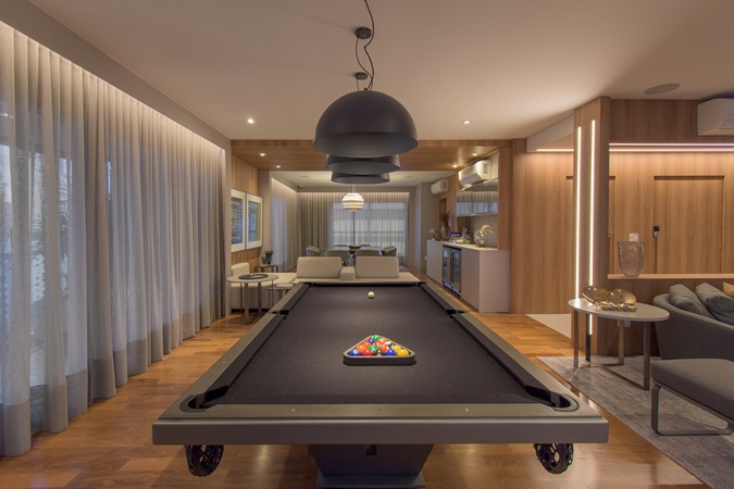 Para quem gosta de criar cenários especiais, também é possível mudar a intensidade e os efeitos de iluminação a partir da automação. Você quer fazer um encontro em família ou preparar um jantar romântico? “Para cada ocasião há luzes ideais e, quando estamos nessa etapa do projeto, avaliamos todas as possibilidades, de acordo com o desejo dos nossos moradores“, explica Danielle Dantas.
