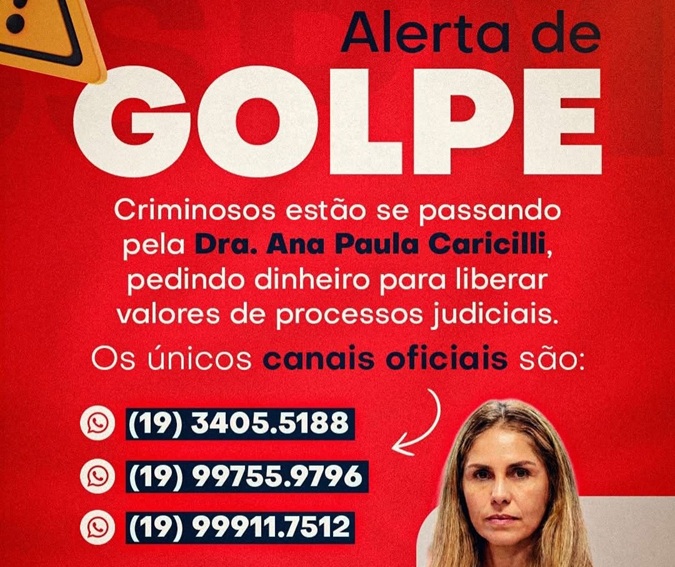 Criminosos estão se passando pela Dra. Ana Paula Caricilli, advogada do SSPMA