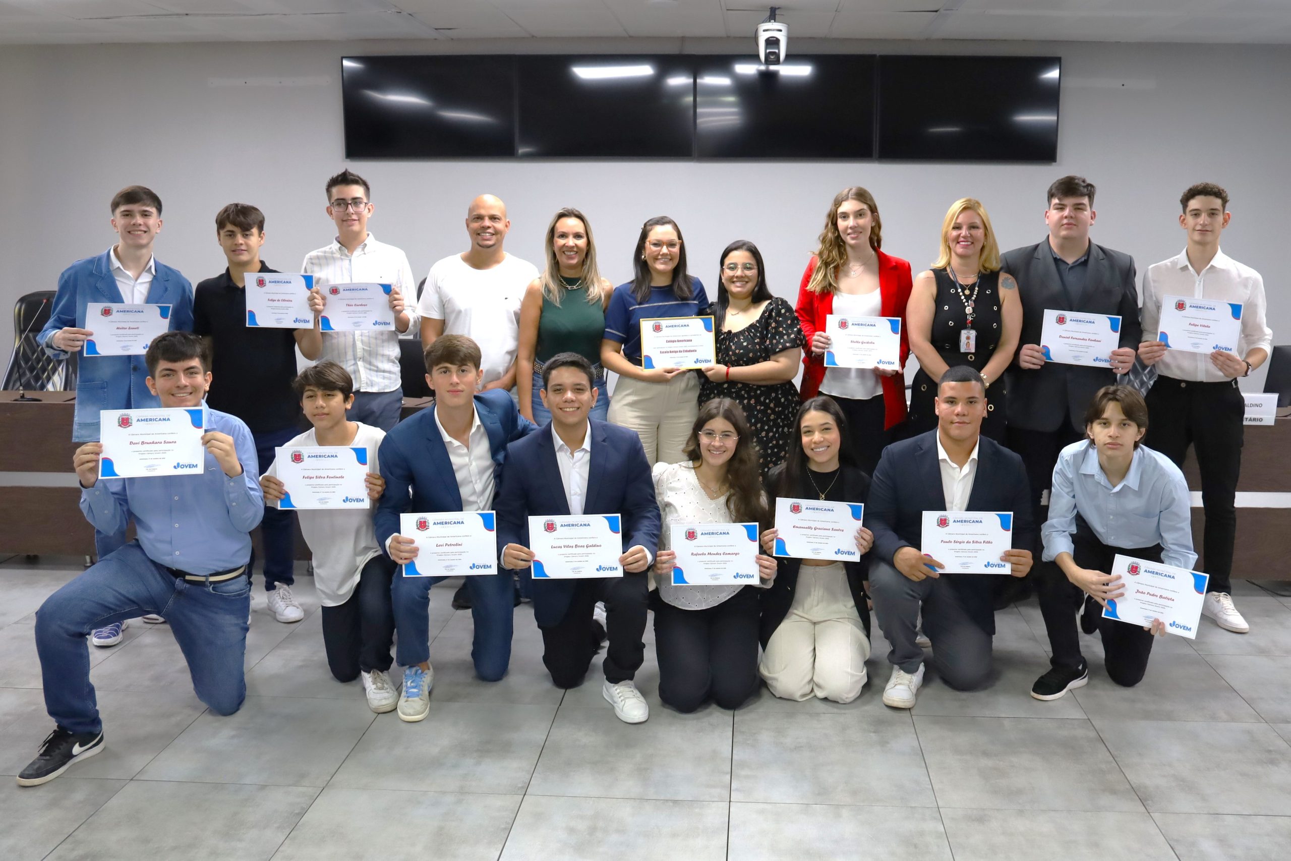 Cerca de 20 alunos do 1º Ano do Ensino Médio do Colégio Americana participaram do projeto Câmara Jovem da Câmara Municipal de Americana nesta sexta-feira (17). Os estudantes da escola localizada no bairro Conserva simularam uma sessão ordinária, debatendo questões cotidiano, projetos de lei e indicações de própria autoria no plenário Dr. Antônio Álvares Lobo.