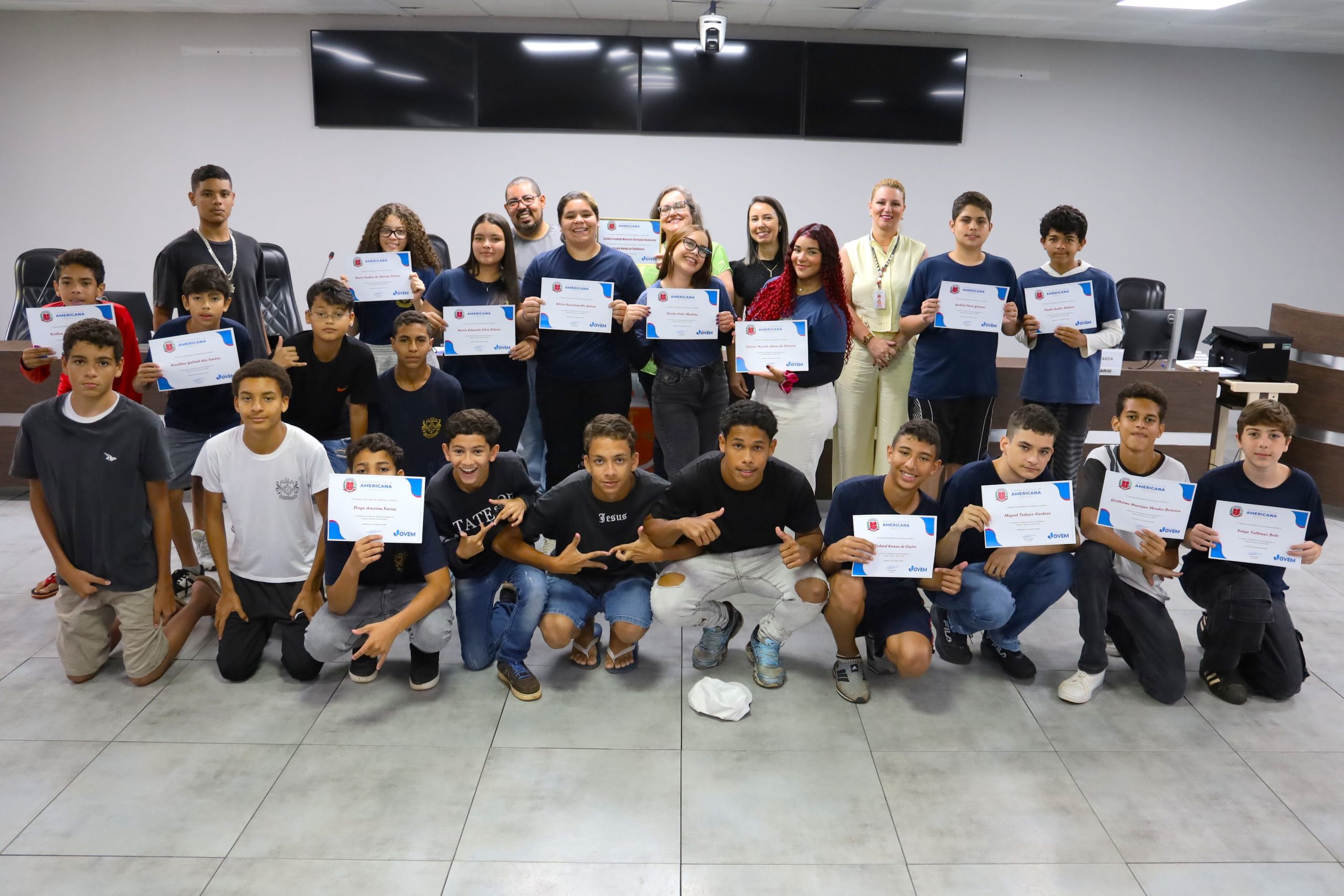 A etapa da sessão simulada contou ainda com uma visita guiada em que os alunos aprenderam sobre a história de Americana e da Câmara e conheceram as dependências do legislativo. Ao final, os vereadores mirins receberam certificados de participação.