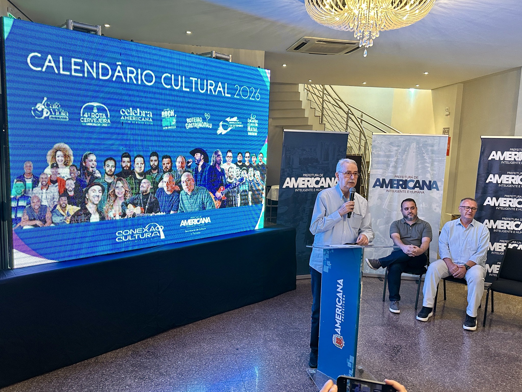O prefeito de Americana, Chico Sardelli, anunciou, nesta segunda-feira (2), o Calendário Cultural 2026, que terá oito grandes eventos e atrações musicais de renome. O anúncio ocorreu em cerimônia no hall de entrada do Teatro Municipal Lulu Benencase.