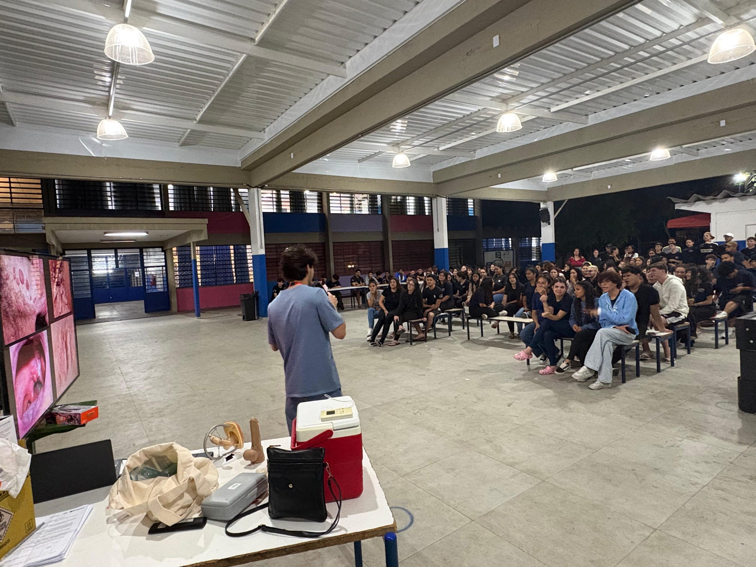 Na terça-feira (25), a Escola Estadual Monsenhor Nazareno Magi recebeu uma palestra para cerca de 100 alunos do ensino médio, conduzida pelo enfermeiro Gabriel Rueda, da UBS (Unidade Básica de Saúde) do Jardim São Paulo. O encontro reforçou a importância da imunização e esclareceu dúvidas dos estudantes. Durante a atividade, 17 cadernetas de vacinação foram avaliadas e duas doses do imunizante aplicadas.