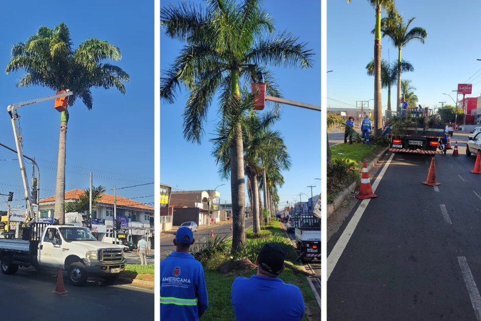 Americana ‘dá um trato’ nas palmeiras-imperiais da Avenida Iacanga