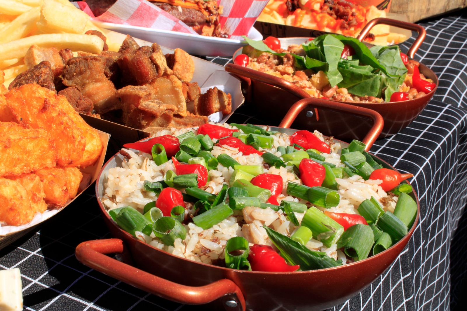 Mas a experiência vai muito além! Mais de 25 expositores participam do evento, oferecendo um cardápio variado que inclui costela fogo de chão, baião de dois, feijão tropeiro, hambúrgueres com torresmo ou shimeji, batatas recheadas, lanches de costela e opções de doces artesanais e sobremesas. E ainda, Churrasco Grego e Arroz Caldoso de Cupim, um prato típico da Espanha com aquela pitada brasileira.