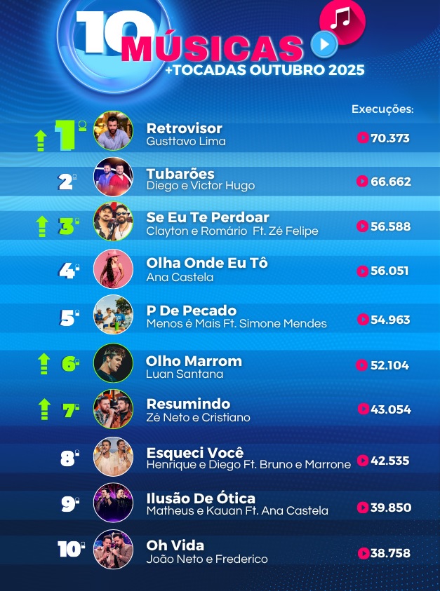 As 10 mais tocadas nas rádios em outubro no Brasil