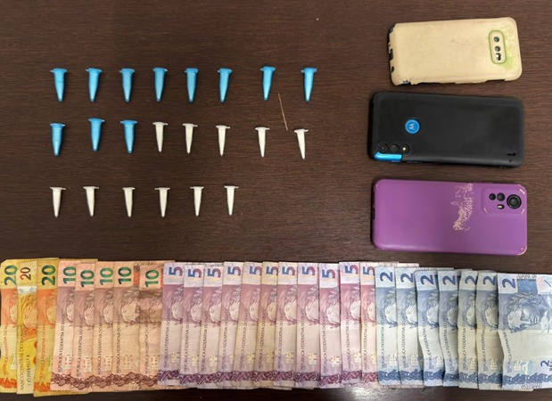 Durante a abordagem, foram localizadas porções de entorpecentes no local onde o dinheiro era armazenado. Com o suspeito, os policiais encontraram duas porções de crack e R$ 20 em dinheiro. A equipe ainda identificou que outro indivíduo guardava valores provenientes da venda de drogas em um trailer nas proximidades.