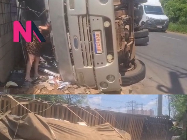 Um casal de idosos, de 72 e 70 anos, ficou ferido após um caminhão perder o controle e tombar no início da tarde desta quinta-feira (16), na Avenida Europa.