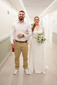 A cerimônia marcou a união de Mariana, enfermeira oncológica, e Gabriel, seu noivo há quase seis anos, diante da mãe da noiva, internada em cuidados paliativos por conta de uma neoplasia cerebral em estágio avançado.