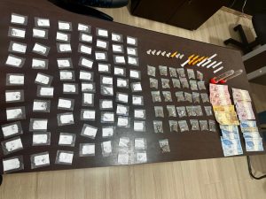 Durante busca pessoal, os policiais encontraram R$ 136 em dinheiro, valor que o suspeito admitiu ser proveniente da venda de entorpecentes. Ele também indicou o local onde escondia drogas, resultando na apreensão de 33 porções de maconha, 86 de cocaína e 7 de crack. O homem foi levado ao Distrito Policial e permaneceu preso.