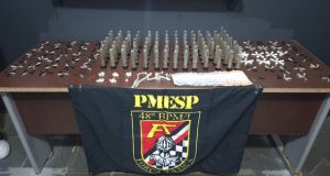Também na tarde de segunda (08), uma equipe foi procurada por um morador que, com receio de represálias, relatou tráfico constante próximo à Rua Graça Aranha, no Jardim Amanda. Os policiais foram ao local e avistaram um suspeito com as características informadas. Ao notar a aproximação, ele arremessou um objeto em um terreno vizinho.