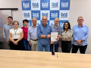 A assinatura foi acompanhada pelo superintendente do DAE, Fábio Renato de Oliveira, pelo vice-prefeito Odir Demarchi, pela diretora da Unidade Técnica do DAE, engenheira Vanessa Maria de Camargo Faria, pelo engenheiro civil Daniel Manzi, doutor em Engenharia Hidráulica e integrante da Exaqua Hidráulica e Saneamento, que presta consultoria à autarquia, além dos representantes da empresa contratada, a engenheira Caroline Estrela e Walter Villar.