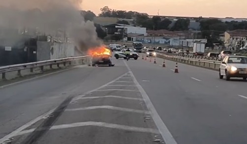 Após o acidente, o carro pegou fogo e o motorista fugiu a pé antes da chegada do socorro.