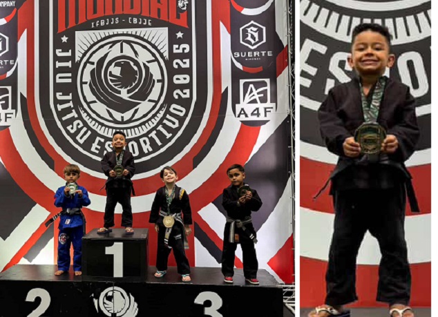 O pequeno atleta Hugo Simões, de apenas 5 anos, sagrou-se Campeão Mundial de Jiu Jitsu em categoria infantil no último sábado 6/12. O evento foi realizado em São Paulo.