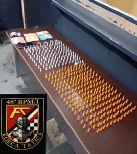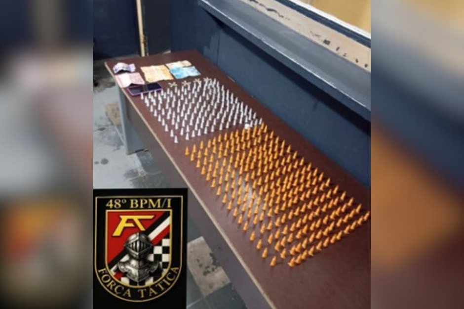 De acordo com informações do 48º Batalhão de Policiamento Militar do Interior (BPMI), uma equipe patrulhava pelo local conhecido por uso e comércio de entorpecentes, na Rua Dionísio Possa, quando abordou um indivíduo que portava um volume na região do abdômen.