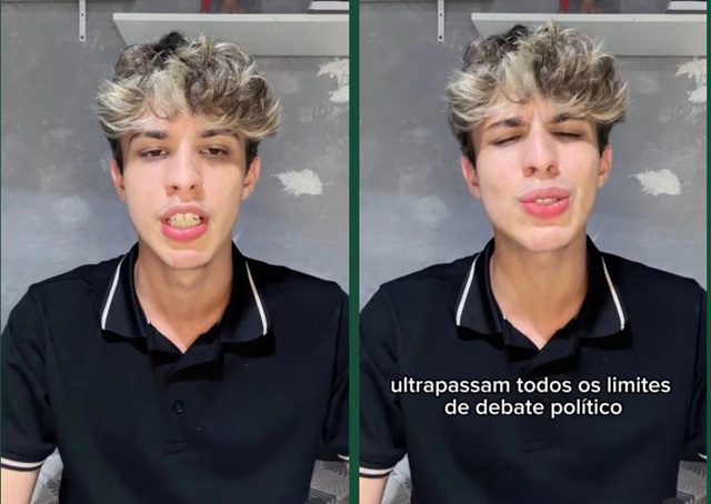 O estudante afirma no vídeo que os ataques que tem sofrido vêm de perfis bolsonaristas da cidade e de cidades vizinhas.