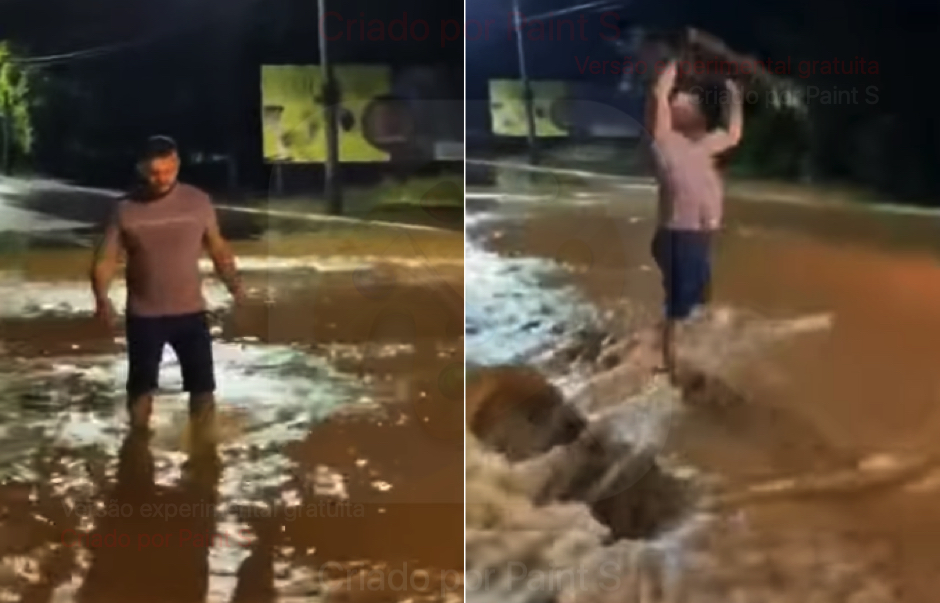 Vídeo ex-vereador tira tampa de bueiro no braço