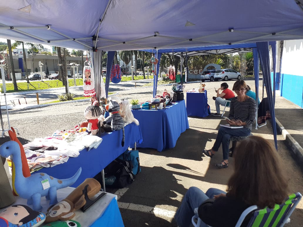 A feira apresenta uma diversidade de produtos feitos à mão, como bordados, pinturas, peças em madeira, vidro decorado, arranjos florais, sabonetes artesanais, crochê, acessórios de moda e artigos religiosos, além de outras opções criativas para presentear, decorar a casa e para uso pessoal.