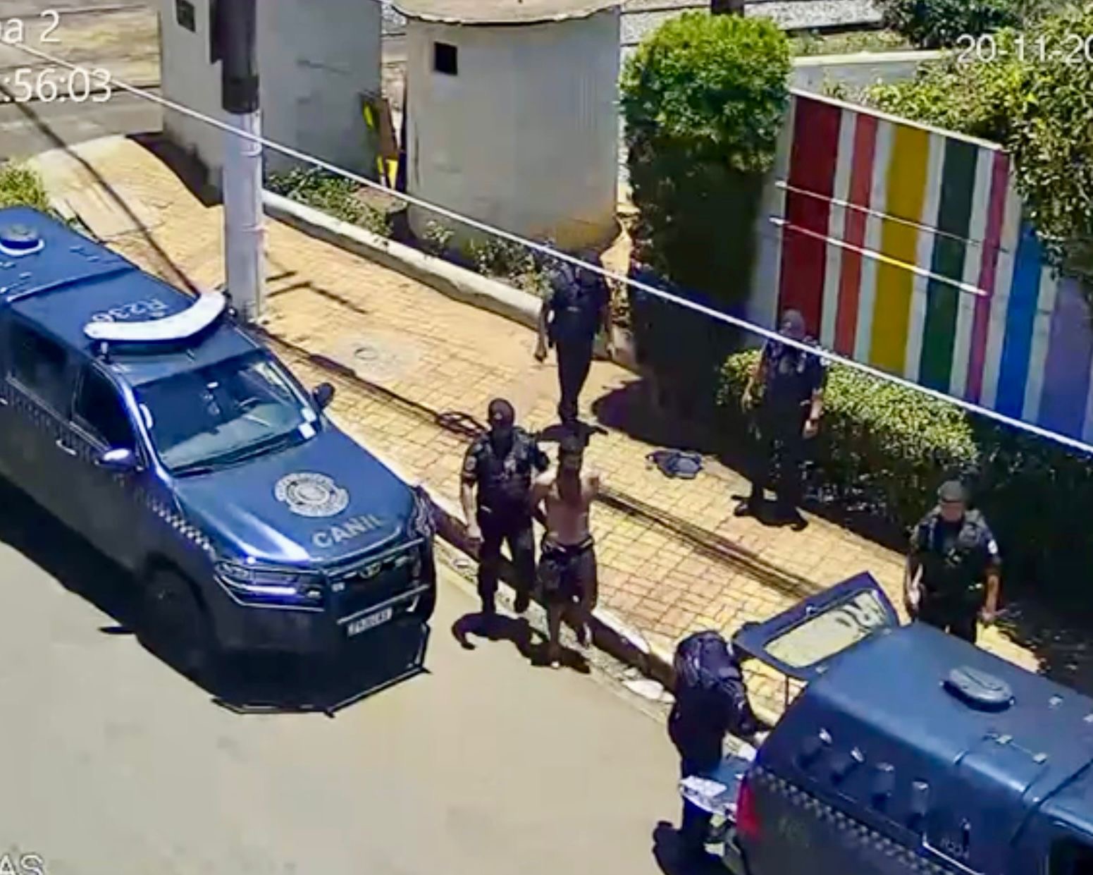 Diante da ocorrência, as equipes do CSI (Centro de Segurança e Inteligência) conseguiram identificar o suspeito por meio das câmeras de videomonitoramento e informaram as equipes da ROMU que se tratava de um indivíduo com barba, trajando camiseta preta, bermuda e boné, havia derrubado e danificado os vasos.