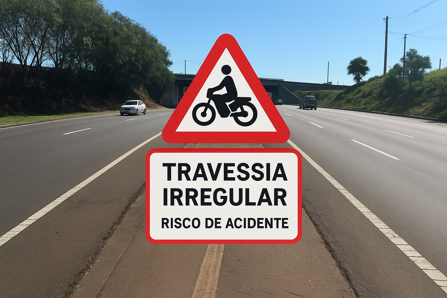 Motoristas, principalmente em motos, fazem manobra proibida cruzando rodovia