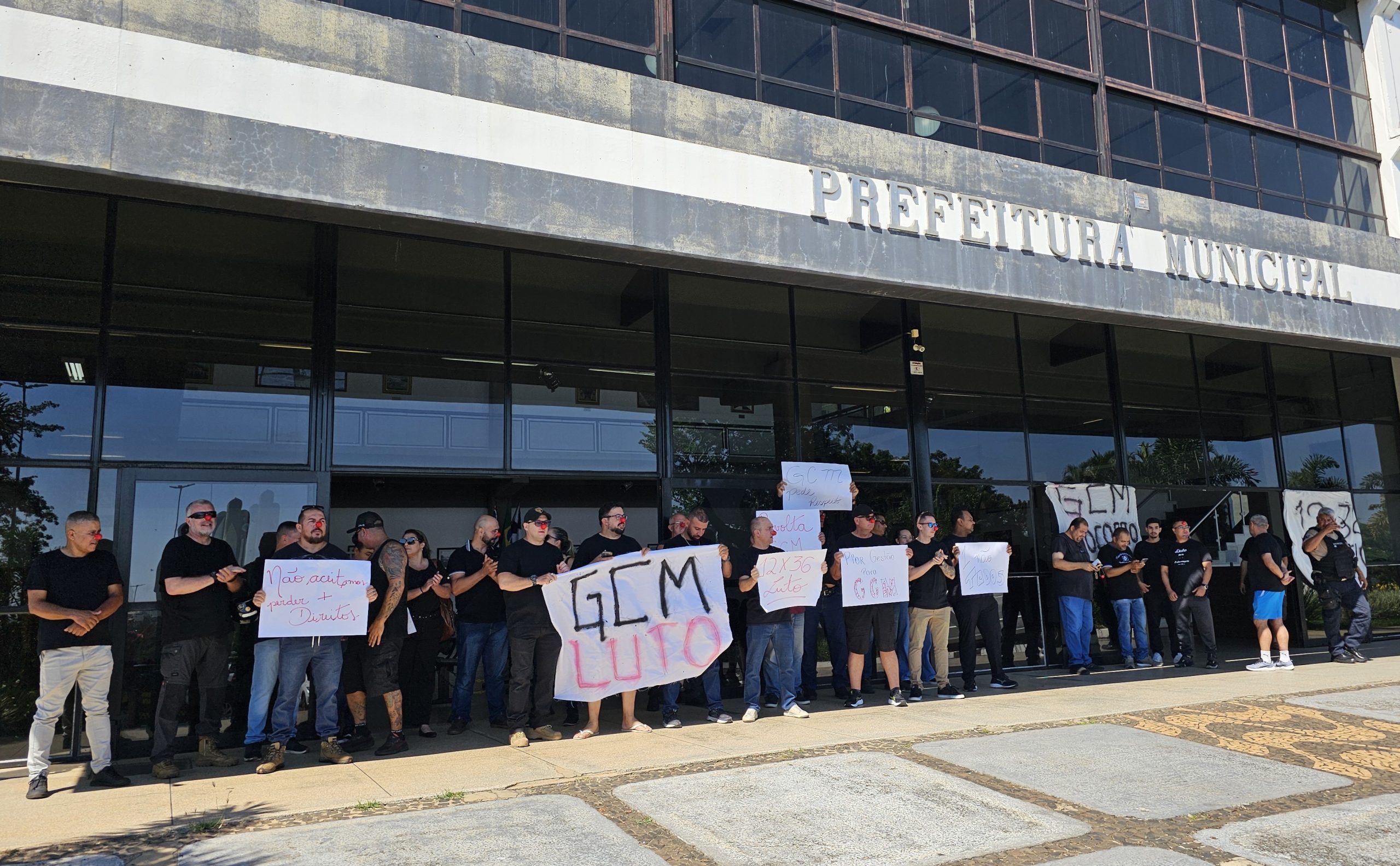Durante o protesto, os servidores exibiram cartazes com frases como “GCM em luto”, “Pior gestão para GCM”, “Cadê a linha de comando” e “Não aceitamos perder direitos”. Também entoaram gritos direcionados ao prefeito Cláudio Schooder-Leitinho, cobrando posicionamento e diálogo.