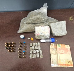 Conforme informações do 48º BPMI, o passageiro assumiu a posse do material e informou que havia retirado os itens de um apartamento no Condomínio Lótus. No imóvel indicado, os policiais localizaram mais embalagens, entorpecentes, munições e dinheiro em espécie. Houve a apreensão de 1,096 kg de maconha, 0,012 kg de crack, 0,016 kg de cocaína, 11 munições calibre .38, 12 munições calibre .40, 40.000 eppendorfs vazios, duas balanças de precisão, R$ 70,00 e um celular. O passageiro permaneceu preso, enquanto o condutor do veículo foi liberado após prestar esclarecimentos.