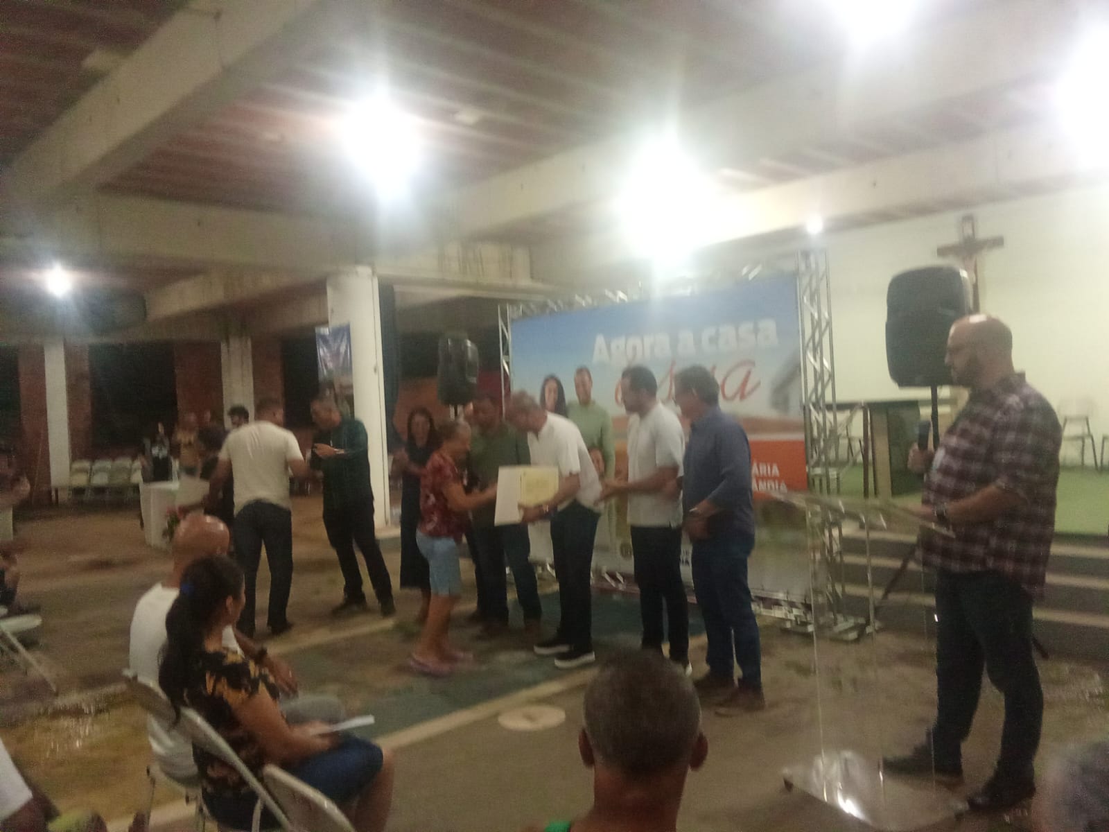 O mutirão de regularização fundiária realizado pela Prefeitura de Hortolândia está fortalecido neste mês com a entrega da documentação que garante a segurança jurídica e habitacional de mais famílias. Na noite desta terça-feira (16), em evento realizado no salão da igreja São Guido Maria Conforti, no Jardim Novo Ângulo, aconteceu mais uma etapa da ação para moradores do bairro, além de residentes do Parque Perón e da Vila da Conquista. De acordo com a Secretaria de Habitação, o prefeito Zezé Gomes entregou, em mãos, a documentação para 45 beneficiários que, agora, estão dentro dos padrões da legalização nestas áreas.