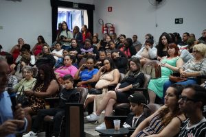 Quase 220 pessoas participaram, na manhã desta quarta-feira (12/12), da última cerimônia de entrega, em 2025, dos kits do “Cuidar: Programa de Atendimento à Gestante”, em realização pela Prefeitura de Hortolândia. Gestantes, papais, avós, crianças e outros membros da rede de apoio familiar vieram ao auditório da Emef (Escola Municipal de Ensino Fundamental) Profa Marleciene P. Presta Bonfim, no Remanso Campineiro, acompanhar a entrega dos 160 kits de maternidade de dezembro, dois deles para grávidas de gêmeos.