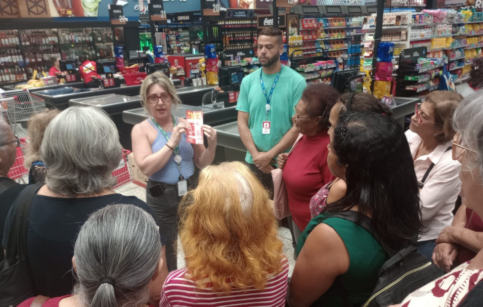 Os participantes das oficinas “Mundo Virtual” e “Empreendedorismo”, promovidas pela Secretaria Municipal de Inclusão Social de Sumaré, participaram nesta terça-feira (28) de uma atividade prática especial no Supermercado São Vicente. A ação proporcionou aos idosos uma vivência real sobre o funcionamento de um grande grupo empresarial que teve origem no empreendedorismo local.
