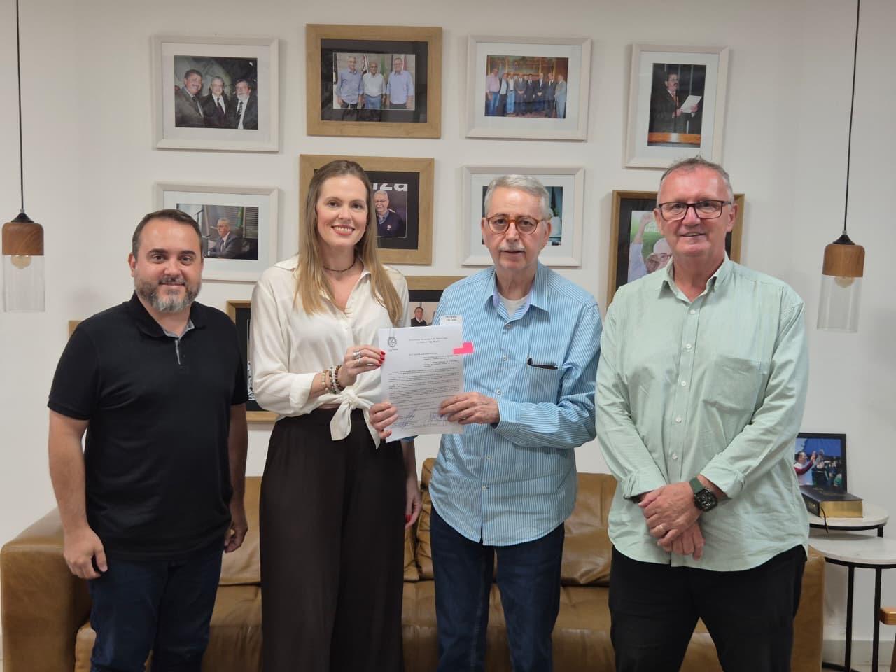 O vereador Lucas Leoncine (PSD) acompanhou na quinta-feira (16), no gabinete do prefeito Chico Sardelli, a sanção da Lei Municipal nº 7.054/2026, de sua autoria, que inclui a Semana Municipal da Criatividade e Inovação no calendário oficial do município. Participaram também o vice-prefeito Odir Demarchi e a mentora de negócios artesanais e criativos e fundadora da Academia do Artesanato, Fernanda De Nadai.