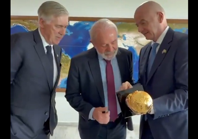 Lula recebe Infantino e pede que Ancelotti traga a Copa para o Brasil