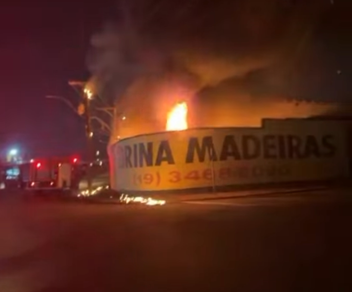 Um madeireira pegou fogo noite desta terça-feira às margens da Rodovia Luiz de Queiroz (SP-304) em Santa Bárbara d’Oeste.