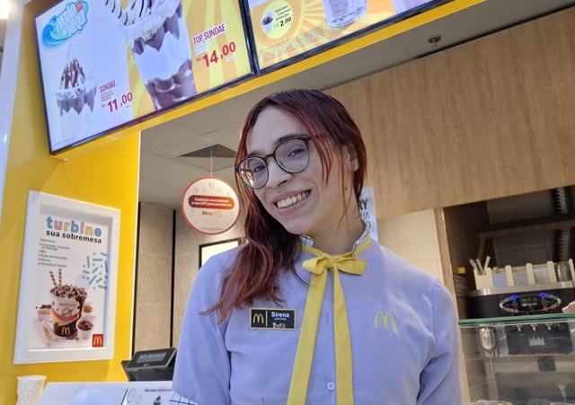 É o caso da Sirena Bessa, 20 anos, que está construindo no Méqui uma trajetória marcada por acolhimento, crescimento e representatividade. Há 11 meses na empresa, ela entrou como Atendente e recentemente foi promovida ao cargo de Embaixadora da Experiência do Cliente, destacando-se pelo desenvolvimento profissional e pela identificação com os valores de respeito e diversidade no ambiente de trabalho.