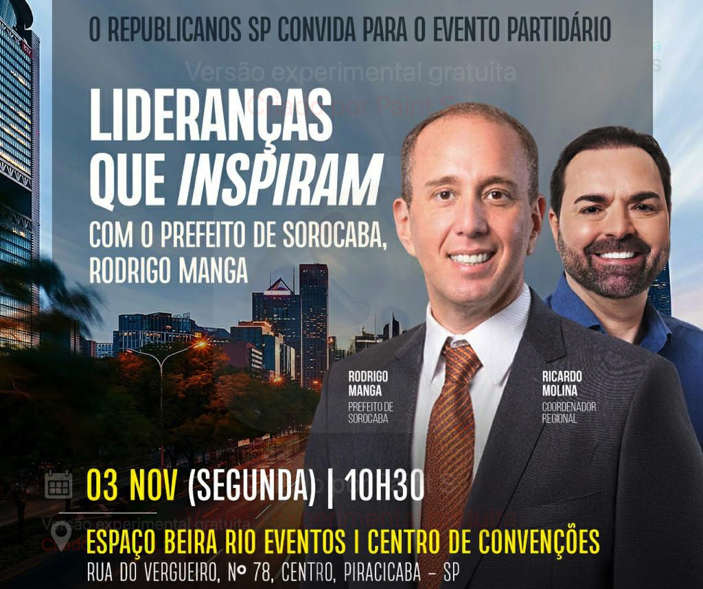 O evento ‘Lideranças que inspiram’ acontece em Piracicaba no dia 3 de novembro e tem a marca do partido dos dois e do governador Tarcisio de Freitas- o Republicanos.