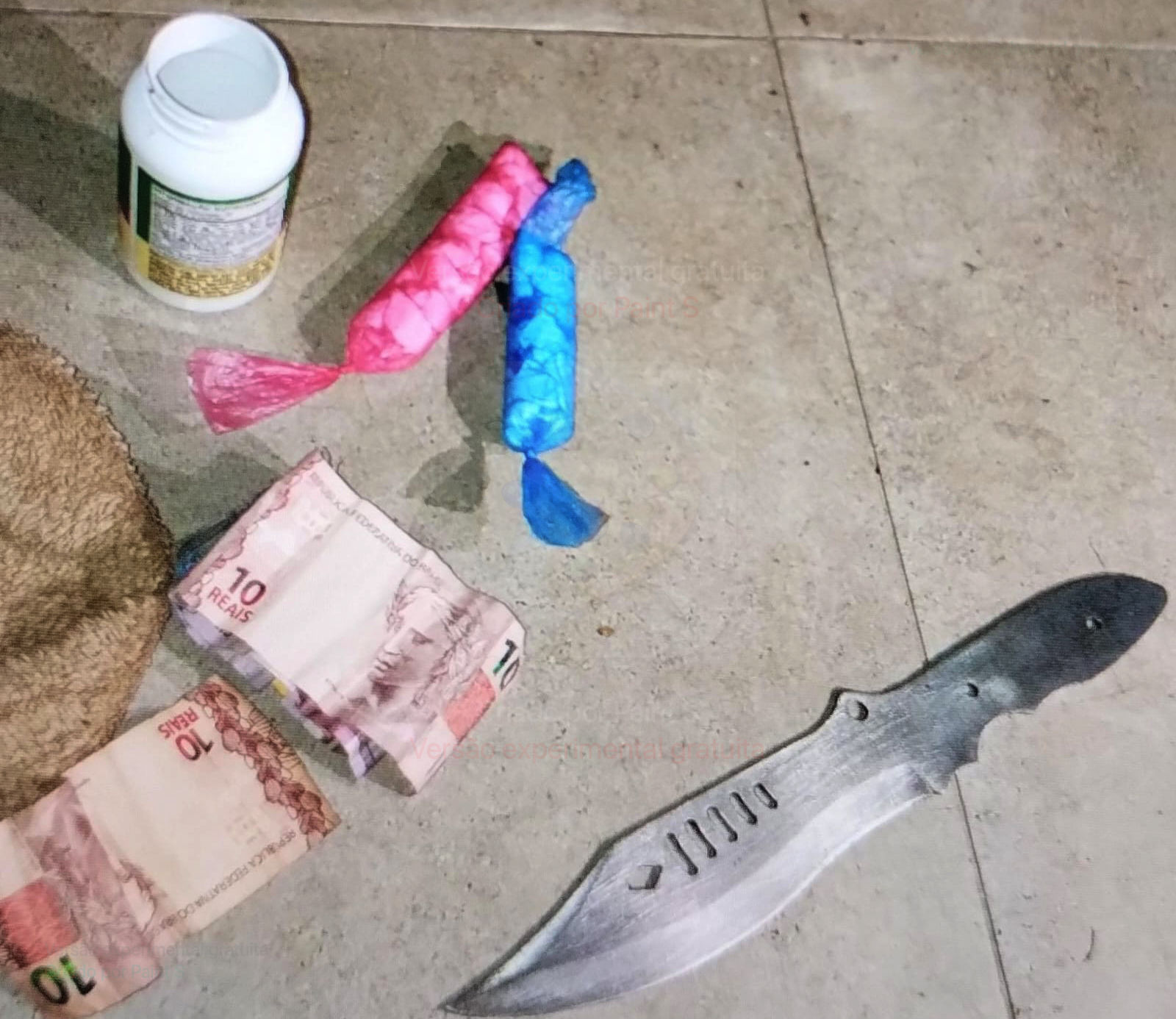 Ao aproximar-se da adega, a equipe notou um indivíduo mexendo em seus pertences, motivando a abordagem. Durante busca pessoal e revista em uma mochila do autor, foi localizado dentro de um frasco 35 unidades de substância análoga à cocaína, a quantia de R$ 78 em notas trocadas, bem como uma faca e um aparelho celular sem chip.