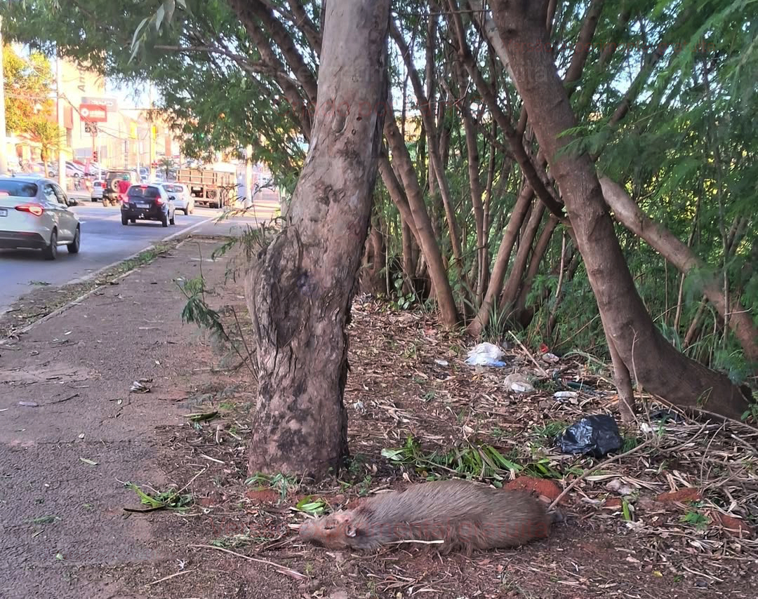 “Ao sair do trabalho retirei uma capivara que estava atrapalhando o trânsito. Ela foi atropelada na Av. Nossa Senhora de Fátima, próximo a entrada do Shopping Americana.
