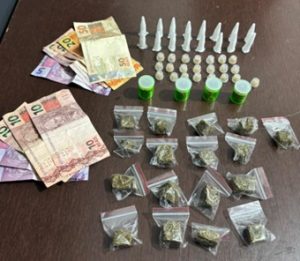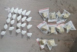 Durante a abordagem, foram localizados 19 microtubos de cocaína e mais dois pinos da mesma substância, totalizando 0,029 kg, além de porções de maconha, com peso aproximado de 0,031 kg, encontradas em uma lixeira próxima. Diante dos fatos o indivíduo foi conduzido ao Distrito Policial onde permaneceu preso.