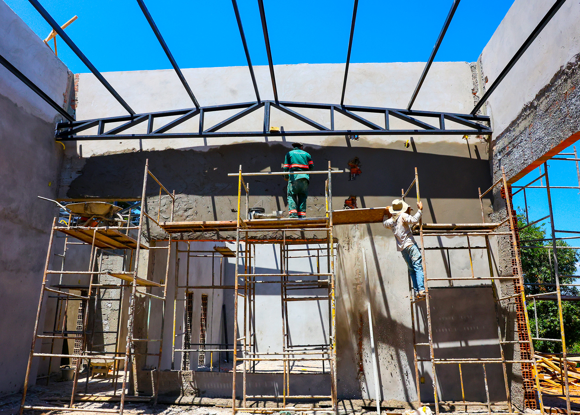 A Prefeitura de Santa Bárbara d’Oeste segue com a construção do novo Centro Cultural “Edgard Tricânico D’Elboux”, localizado no Conjunto Roberto Romano. As equipes trabalham na montagem da estrutura metálica que dará sustentação ao telhado, além da execução dos serviços de reboco.