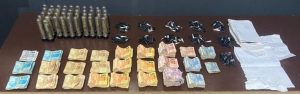 Foram apreendidos 0,794 kg de maconha, 0,226 kg de cocaína e R$ 20.802,00 em dinheiro.