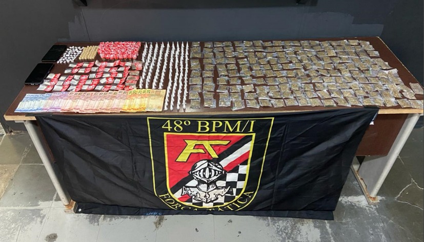 No imóvel, uma mulher também confessou participação e entregou parte das drogas, indicando onde o restante estava escondido.