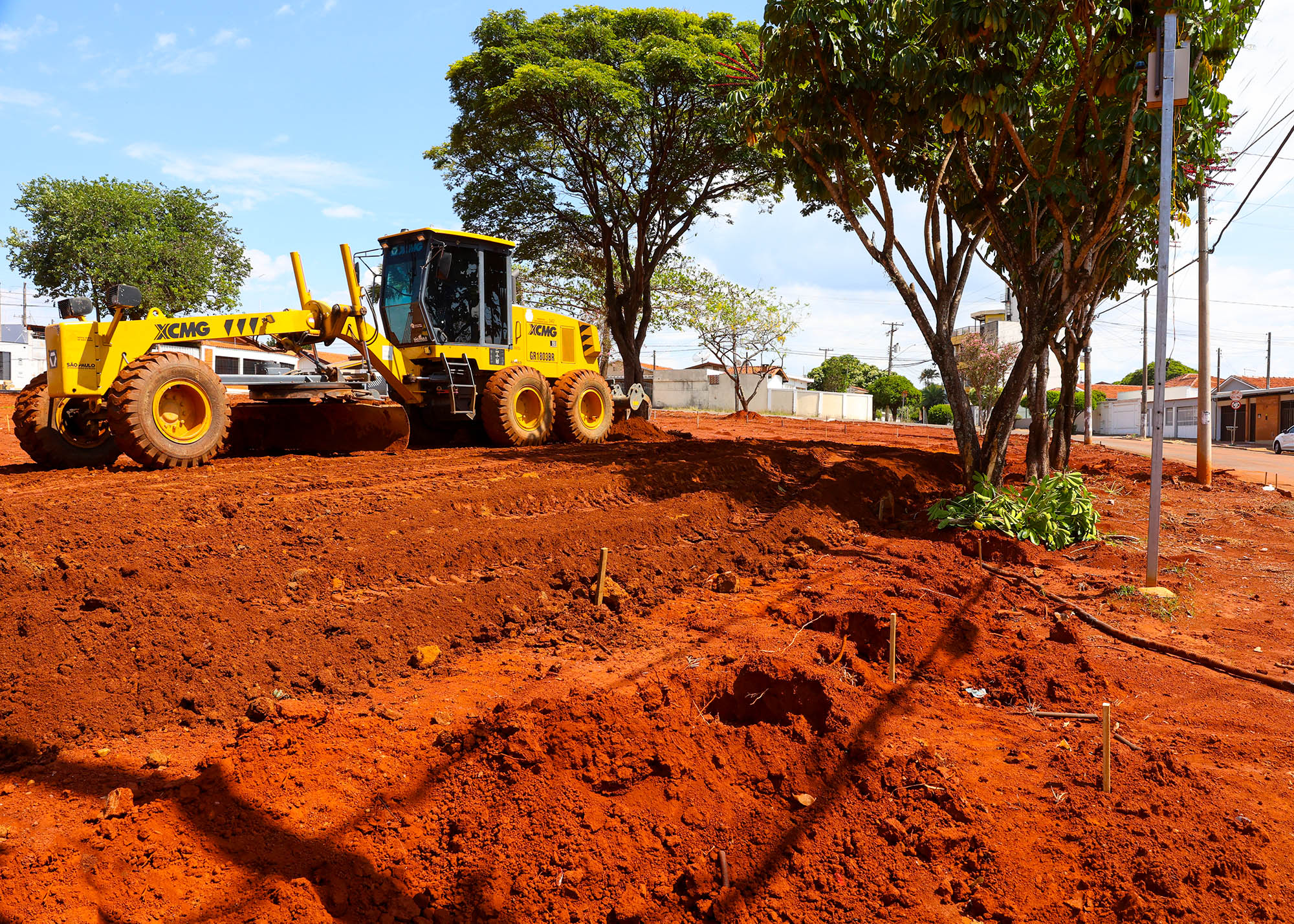Os serviços para a revitalização da Praça “José Bellani”, no Jardim Dulce, avançam. Máquinas e equipes de trabalho executam a terraplanagem do espaço localizado entre as ruas das Hortências, das Palmas, dos Maracujás e dos Lírios.
