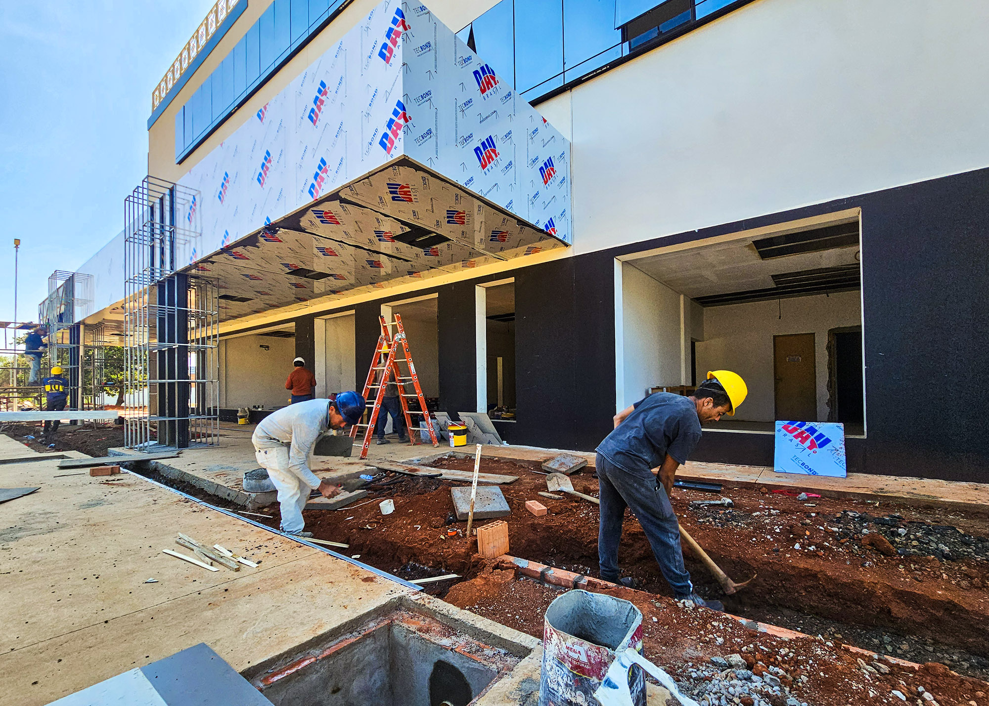 Atualmente, as equipes executam os trabalhos de impermeabilização e regularização do piso do quarto andar, etapa necessária para a instalação dos equipamentos de ar-condicionado. Também estão em andamento os serviços de alvenaria de fechamento da caixa d’água do térreopintura de paredes e portas e a instalação do poste de entrada de energia.