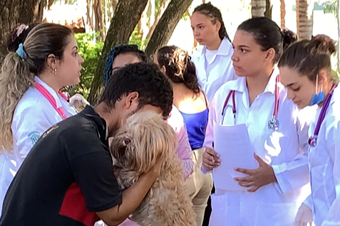 Orientação com auxiliar de Medicina Veterinária sobre como cuidar da saúde do animal de estimação.