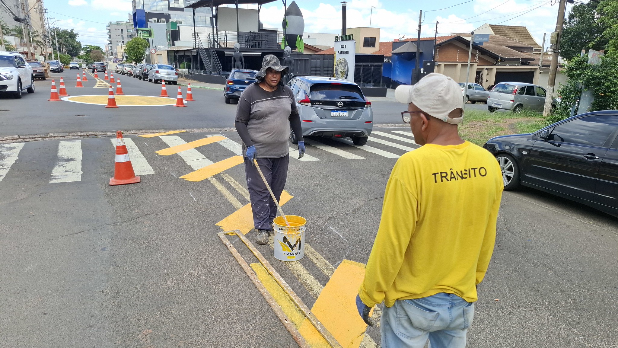 As intervenções começaram nesta terça-feira (4), com a pintura da sinalização de solo, e devem ser concluídas nesta quarta (5), com a instalação dos tachões.