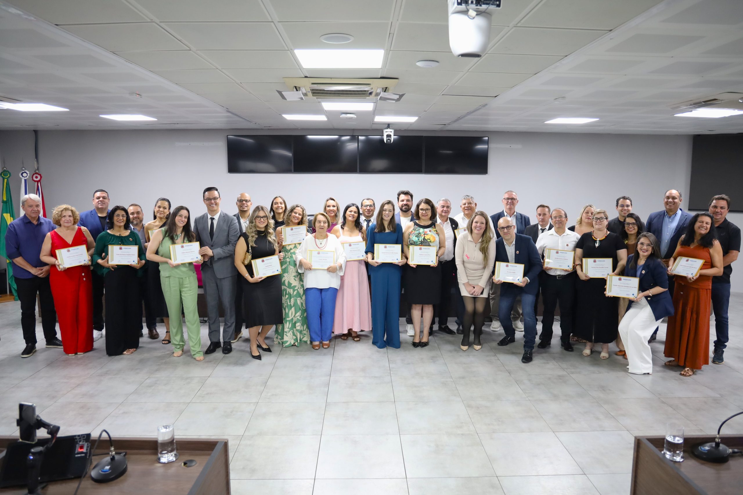 A Câmara Municipal de Americana realizou na quinta-feira (23) sessão solene para entrega do prêmio “Professores Destaques do Ano Fanny Olivieri” a dezoito profissionais por seus méritos e relevantes serviços prestados à educação no município de Americana.