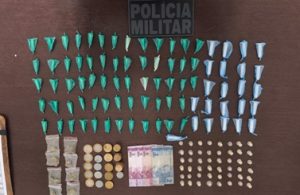 Na tarde de sexta-feira (12), durante patrulhamento na Rua Engenheiro Jaime Pinheiro Ulhôa Cintra, no bairro Bom Retiro, em Sumaré, policiais flagraram um homem e uma mulher realizando a troca de objetos por dinheiro. Ao perceberem a presença da viatura, o homem tentou se afastar, enquanto a mulher dispensou uma sacola no chão. Abordada, ela confessou que comercializava drogas no local. Com a suspeita foram encontradas 41 porções de cocaína, uma porção de crack e R$ 78,50 em dinheiro. O homem, que havia acabado de adquirir o entorpecente, tentou dispensar quatro porções de cocaína. Ambos foram conduzidos ao Distrito Policial, onde o homem foi liberado e a mulher permaneceu presa.