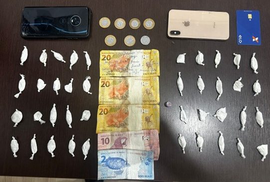 Na tarde de sexta-feira (12), durante patrulhamento na Rua Engenheiro Jaime Pinheiro Ulhôa Cintra, no bairro Bom Retiro, em Sumaré, policiais flagraram um homem e uma mulher realizando a troca de objetos por dinheiro. Ao perceberem a presença da viatura, o homem tentou se afastar, enquanto a mulher dispensou uma sacola no chão. Abordada, ela confessou que comercializava drogas no local. Com a suspeita foram encontradas 41 porções de cocaína, uma porção de crack e R$ 78,50 em dinheiro. O homem, que havia acabado de adquirir o entorpecente, tentou dispensar quatro porções de cocaína. Ambos foram conduzidos ao Distrito Policial, onde o homem foi liberado e a mulher permaneceu presa.