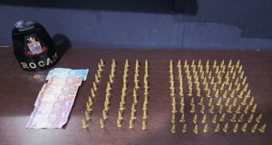 No entanto, o envolvido declarou que havia dispensado dinheiro recebido para permanecer em vigilância no local. Em averiguação na área indicada, na Estrada Municipal Antônio Nazareno Gomes, foi localizada uma sacola preta contendo 0,256 kg de cocaína e R$ 140,00 em dinheiro. O homem foi levado ao Distrito Policial e acabou preso.