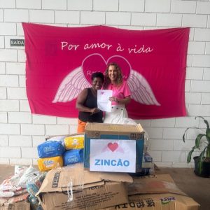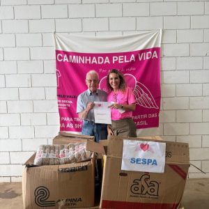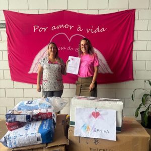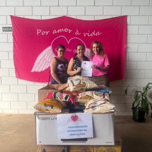 A entrega dos alimentos reforça o impacto social do movimento, que une conscientização sobre a saúde da mulher e ações solidárias em benefício da comunidade.