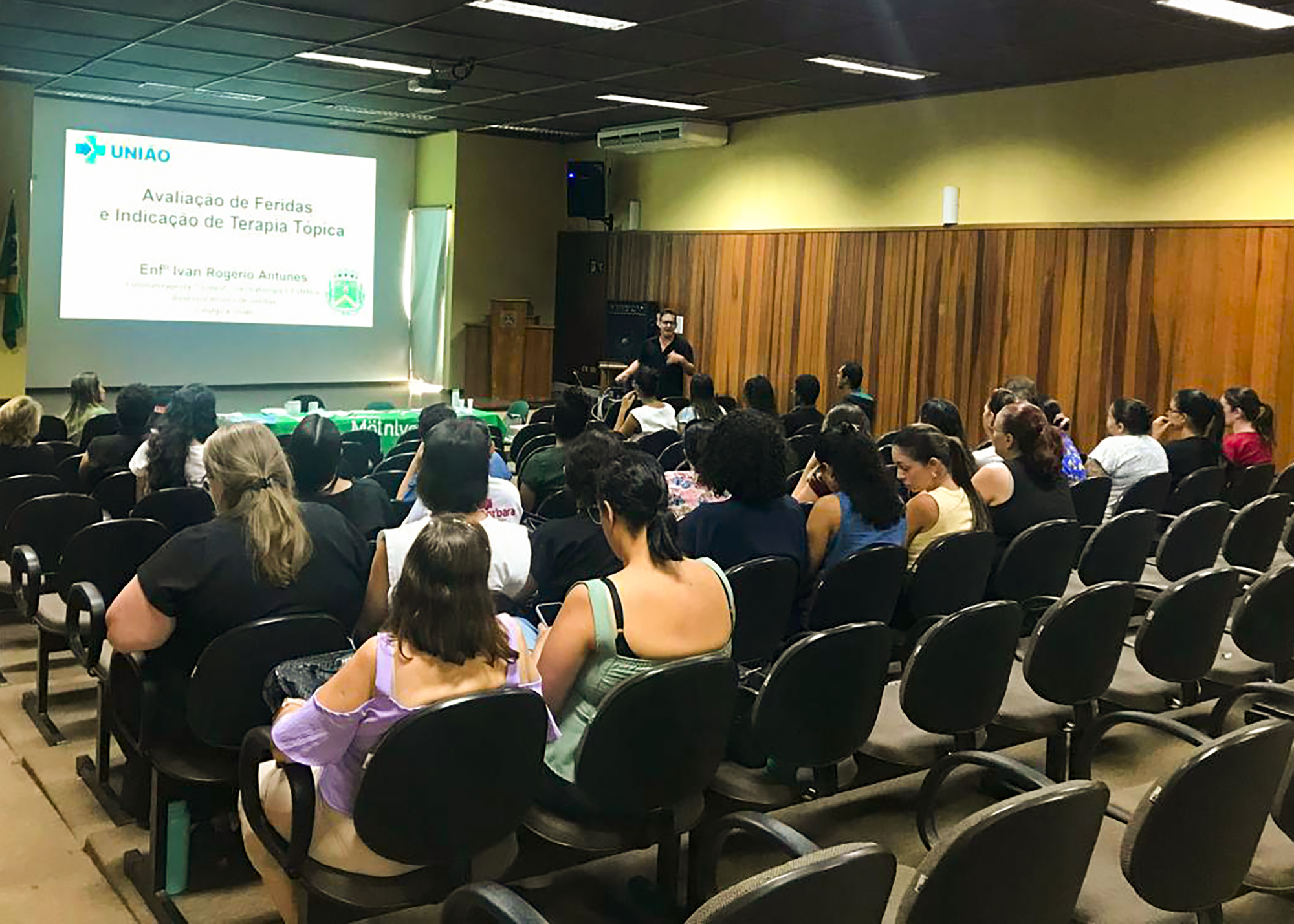 Durante a iniciativa houve aula expositiva dialogada; discussão de casos clínicos reais; apresentação de imagens para análise e classificação de feridas; demonstração de coberturas e produtos utilizados no tratamento; trocas de experiências entre os profissionais; e aplicação prática do raciocínio clínico para tomada de decisão, com utilização de protocolos e manuais e imagens ilustrativas de tipos de feridas.