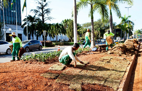 Após as instalações da adutora no trecho de travessia da Avenida Monte Castelo, o DAE (Departamento de Água e Esgoto) de Santa Bárbara d???Oeste e a Secretaria de Meio Ambiente realizam a remodelação do paisagismo no canteiro central do local. Nesta quinta-feira (25) funcionários iniciaram a colocação de nova grama.